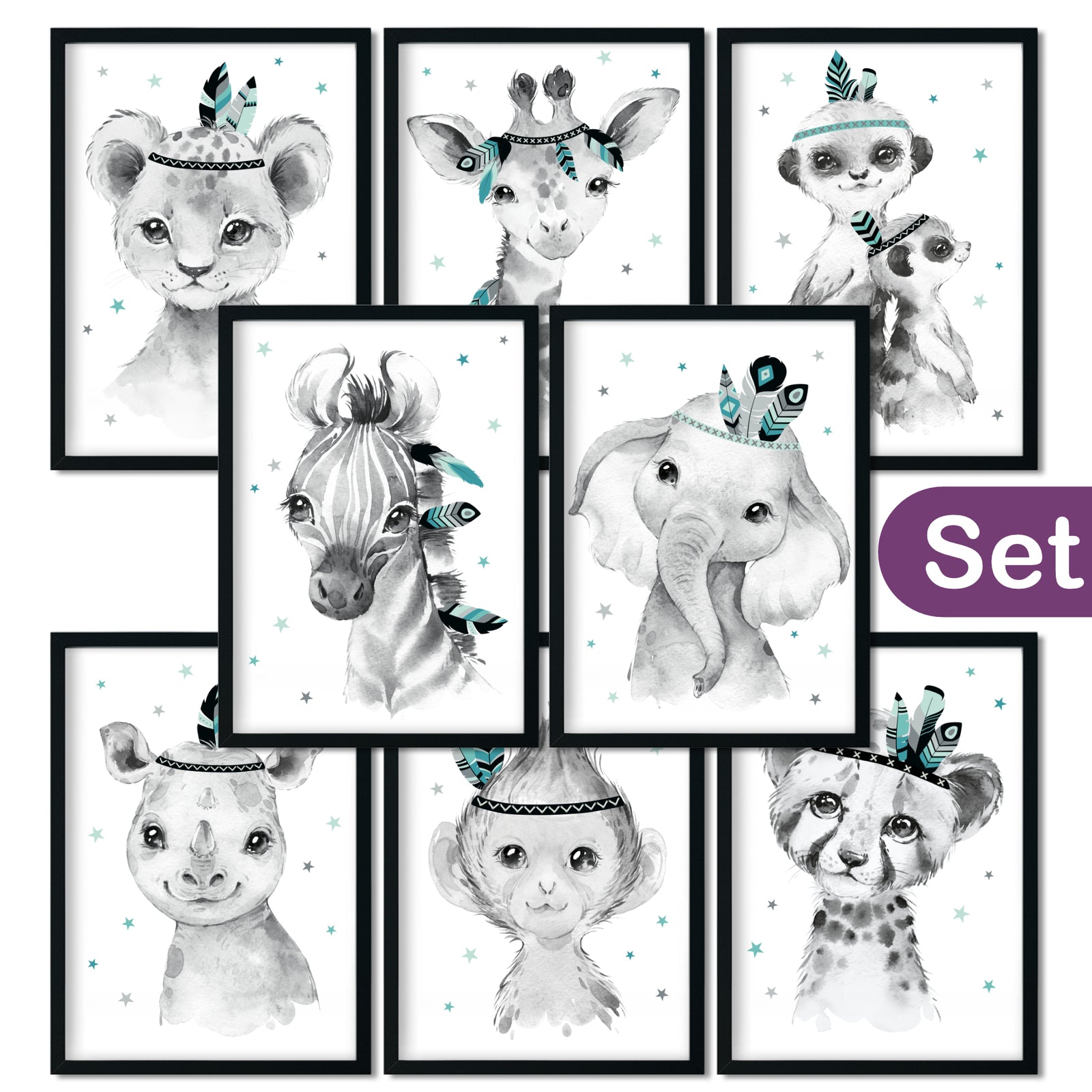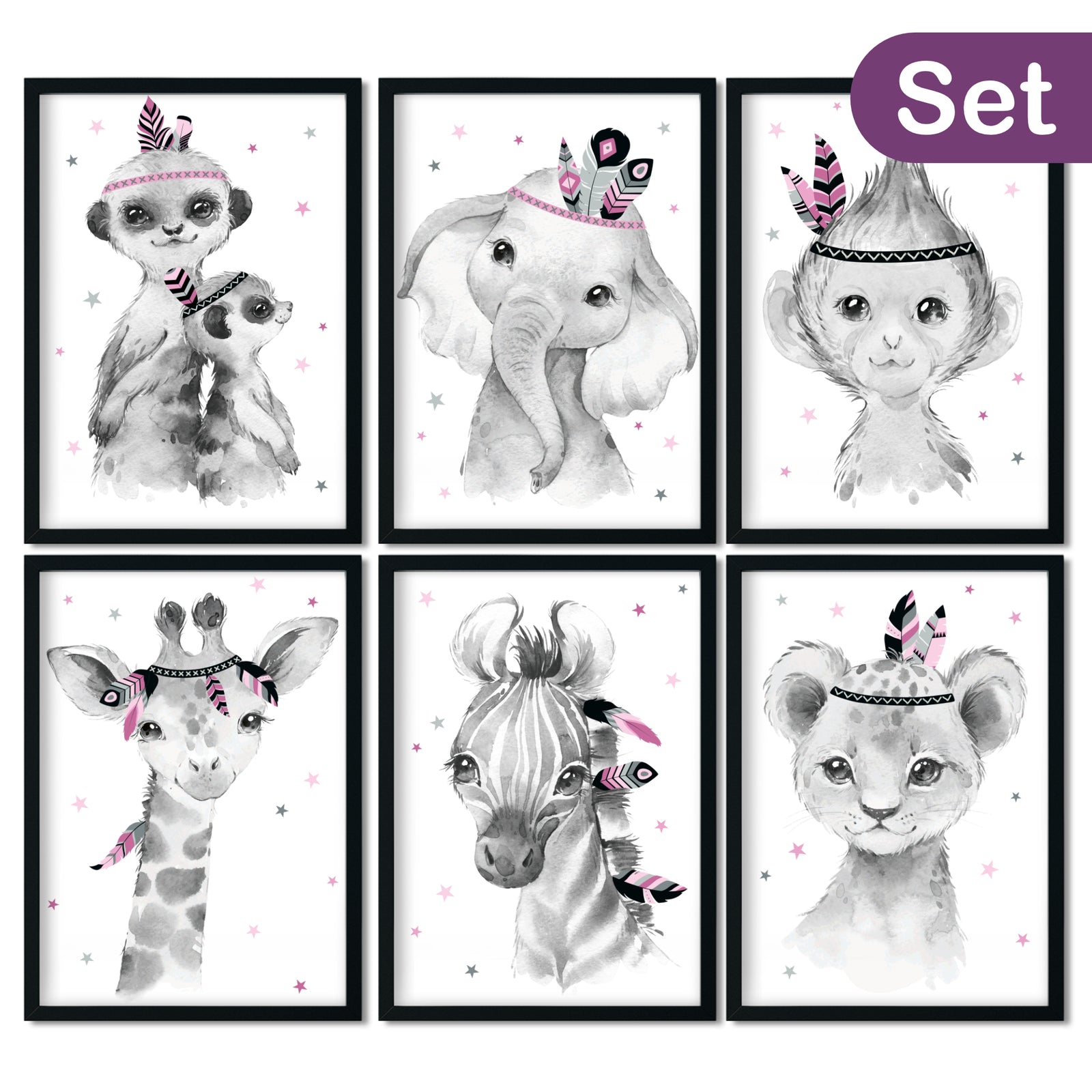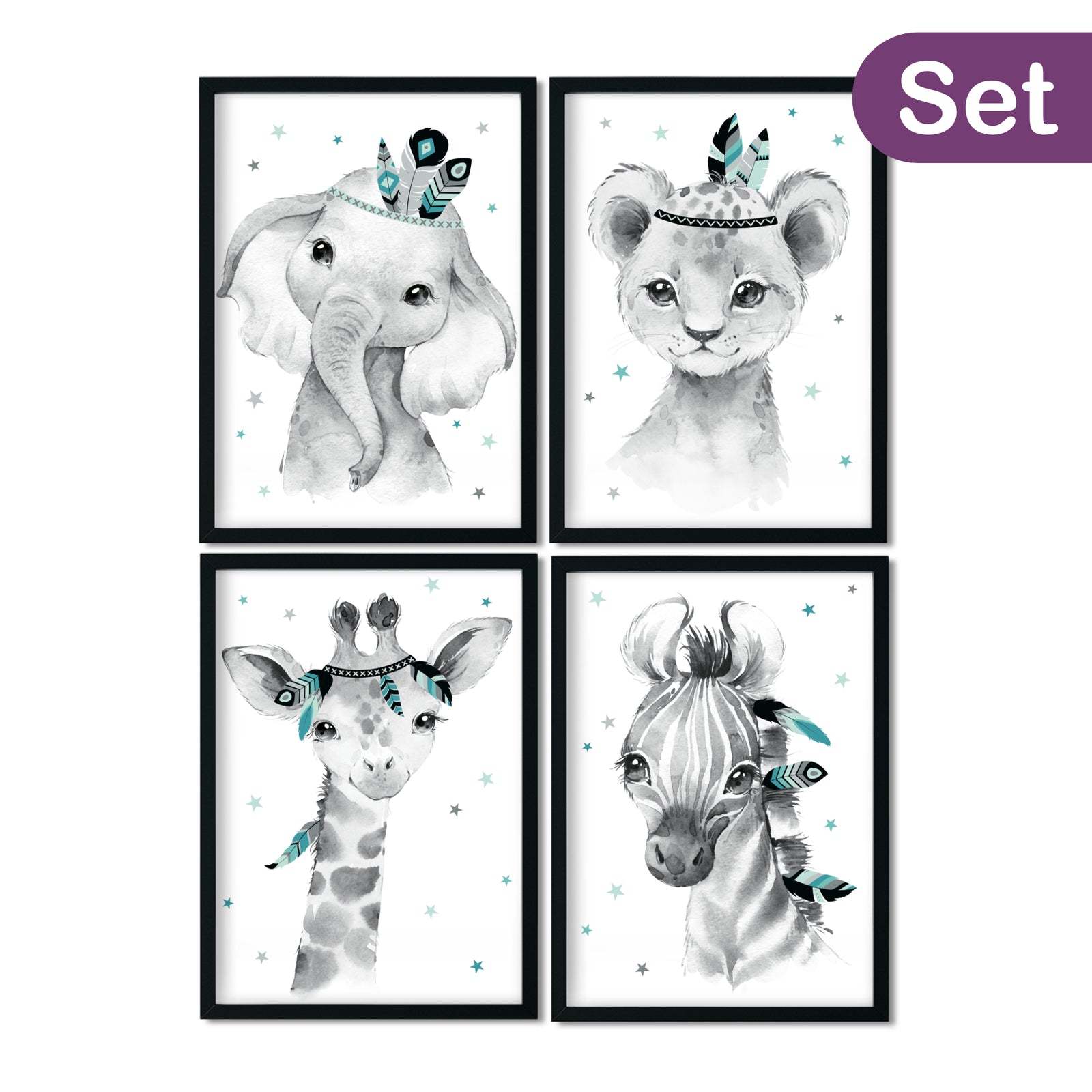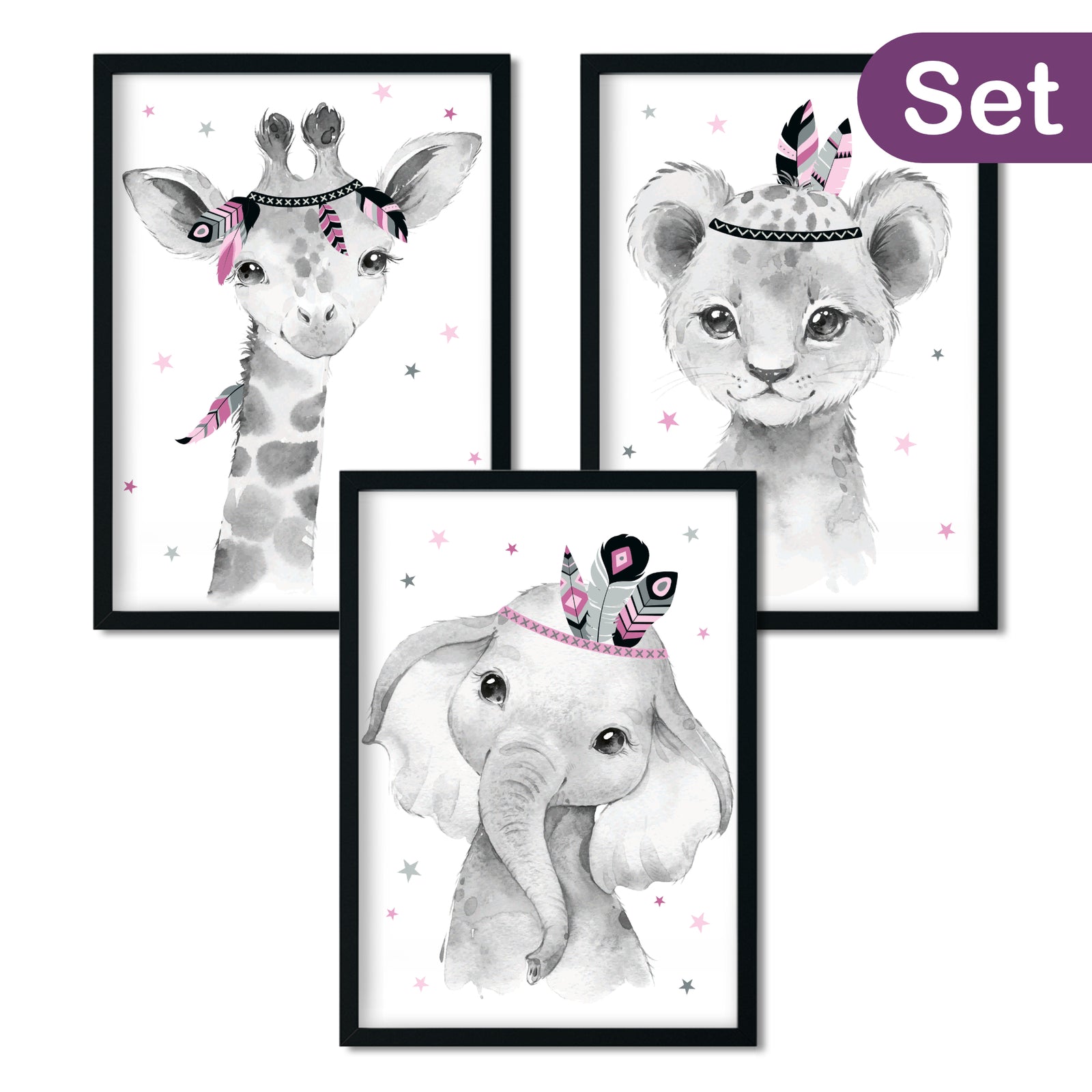 Bei unseren Kinderbildern mit Tieren könnt Ihr selbstverständlich frei wählen, ob Ihr unsere hochwertigen Papeterie-Produkte gerne mit einem Rahmen oder lediglich als Poster im Zimmer Eures Kindes anbringen wollt. Ihr könnt bei uns auch einzelne Sets erwerben: Entweder in bunten und satten Farben oder schlicht und niveauvoll in Schwarzweiß gehalten. Dabei stehen unsere Sets für Kinderbilder mit Tieren stets unter einem eigenen Motto. Egal ob Dschungel-, Wald- oder Indianertiere mit schickem Kopfschmuck – bei Pingelline Design erhaltet Ihr Kinderbilder mit Tieren für jeden Geschmack und sorgt so für große Augen bei Klein und Groß!